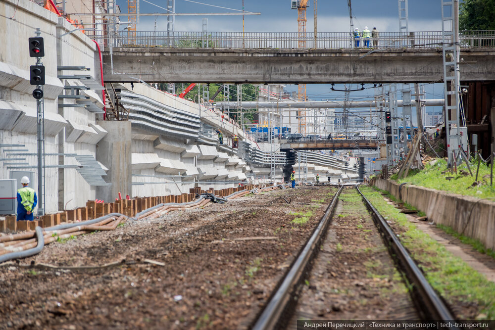 Центральный участок D2 совсем скоро ждут радикальные изменения. Уже на этих выходных, примерно на год, между Курской и Каланчевской закроют один путь, по которому поезда будут ходить реверсивно в обе стороны. Что же сделают на этом участке железнодорожники и что они уже сделали? Расскажем и покажем. Станция Каланчевская открылась тогда, когда ещё не родились те, кто придумал МЦД (как, впрочем, и все, кто это читает) - в конце 19 века, участок между Каланчевской и Курским вокзалом тоже существует очень давно. Долгое время здесь было два пути. В будущем, помимо существующего второго диаметра, здесь расположится ещё и четвёртый - увязать всё это на двух существующих путях, сохранив такт и вменяемые интервалы, невозможно. Поэтому ещё в прошлом году здесь начались масштабные работы - выемку, в которой находятся пути расширяют, строят подпорные стены, а самих путей станет четыре, по паре для каждого из диаметров. Уже сейчас поезда в сторону Подольска ходят по старому пути, а поезда в сторон