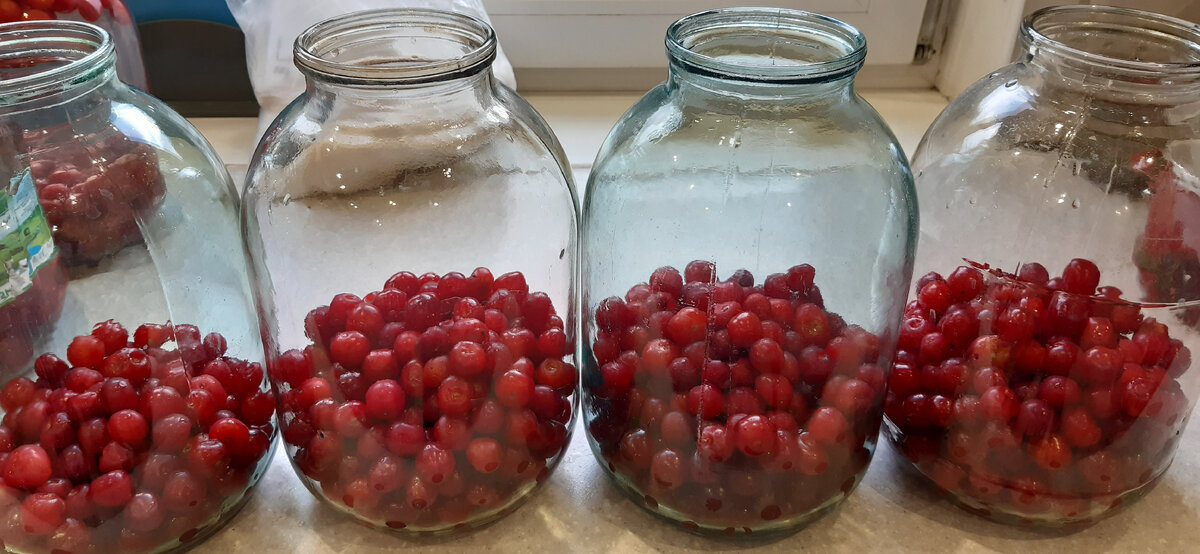 Готовлю прямо в банках вишнёвый компот и ягоды все целые , и вкус насыщенный.