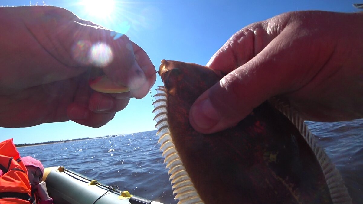 В Белом море обитает несколько видов камбалы, отличающиеся как по внешнему виду, так и по поведению и местами обитания, если по-простому, то это речная камбала и камбала-ерш. Первая, из названия понятно, бывает в реках, вторая больше тяготеет к морю, и подходит к берегу иногда. Не буду вдаваться в подробности, сейчас пусть будет все просто камбала.