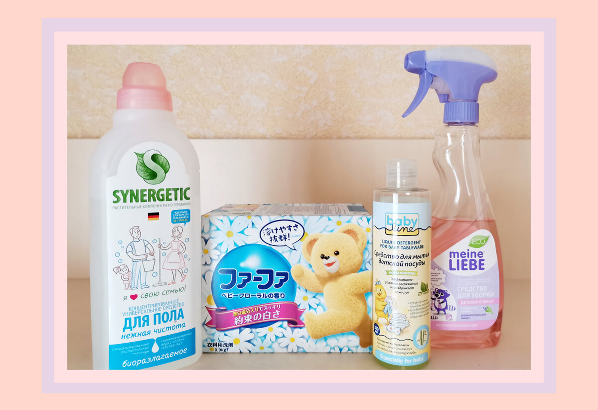 Приветствую всех, кто заглянул на мой канал! Сегодня я решила показать несколько средств бытовой химии, которые превращают уборку в удовольствие и помогают поддерживать чистоту, особенно если есть маленькие детки!🐰 🧸 Концентрированный стиральный порошок для детских вещей "Nissan FaFa" с цветочным ароматом! Коробка 900 г, произведено в Японии!🌸 Очень хорошо отстирывает, пахнет нежно и деликатно, хватает надолго! 🧸 Средство для уборки детских комнат "meine LIEBE", гипоаллергенное, с антибактериальным эффектом🦡 Прекрасно оттирает, например, следы засохшей детской каши с поверхности обеденного стола и прочие загрезнения! Надо побрызгать на пятно несколько раз и оставить на 30 секунд, затем просто вытереть тряпочкой или губкой! Не оставляет разводов! Приятно и ненавязчиво пахнет ягодками, можно осуществлять уборку даже если ребёнок находится рядом! 🧸 Средство для пола "Synergetic", с ароматом "Нежная чистота" (антибактериальное); бутылочка 750 мл Во время влажной уборки на 10-ти л