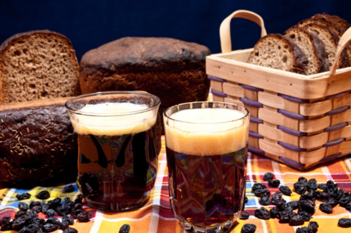Хочу вам предложить рецепт домашнего хлебного кваса. Ингредиенты: 4 литра воды 30 гр. свежих дрожжей или 2 ст. ложки сухих. 0,5 ст. сахара 350-400 гр. бородинского хлеба. изюм Приготовление: Хлеб нарезаем ломтиками и обжариваем в духовке до золотистой корочки с обеих сторон (если хлеб превратится в черные угольки, квас будет горчить). Воду доводим до кипения. Кладем наши сухарики в эмалированную кастрюлю, добавляем сахар и заливаем кипятком. Оставляем остывать. Когда вода станет чуть теплой, зачерпните кружку этой воды, растворите в ней дрожжи и вылейте назад в кастрюлю. Кастрюлю прикрываем крышкой, но не полностью, иначе получится уксус, а не квас. Можно накрыть марлей или полотенцем. Ставим кастрюлю в теплое место для брожения на 2 суток. По окончании этого срока хлебный квас процедить через марлю. Добавьте по вкусу еще немного сахара. Но не переборщите, иначе квас будет слишком ядреным. Перелейте квас в 3-х литровую банку, добавьте жменю промытого изюма, накройте стеклянной крышкой
