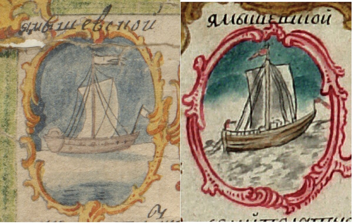 Одним из источников городских гербов в Российской империи были полковые гербы, поэтому созданием российской геральдики занималась в том числе и военная коллегия. Крепости как бы сочетают в себе черты города и полка не являясь не тем не другим, но имея черты и того и другого. Логично поэтому что у крепостей тоже могли появится гербы. Как минимум у части из них они были в середине XVIII века [1]. В Бахмутская крепость и батальон использовали один и тот же герб. А вот комендант Ямышевской крепости Кашаев сообщал, что у крепости нет герба, при этом используется казённая печать с двуглавым орлом и вообще сомневался в целесообразности герба для крепости, это ведь не город [2]. Тем не менее герб Ямышевской крепости можно найти. В Российском государственном архиве древних актов хранится Сибирская генеральная карта 1765 года. Собранная из Российского атласа и с прочих карт. Копирована сержантом Моисеевым. Рукописная и иллюминованная; в ней подробно означены города, селенья, деревни, реки и прил