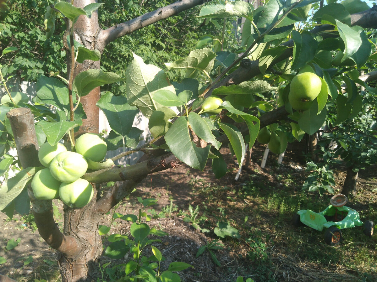 Приветствуем Вас на канале САД и ОГОРОД! Сегодня 30 июня 2021 года. 14 июня этого года мы начали делать публикации на нашем канале. Рассказываем и показываем, как мы выращиваем различные овощи и фрукты и совсем забыли о том, что у нас есть очень интересное растение — яблоня, привитая на дерево груши. Этим сейчас, конечно, трудно кого-то удивить, но наша прививка имеет некоторые особенности. С чего все началось. На участке моего отца (ныне покойного) произрастает яблоня сорта «белый налив» — просто прелесть: яблоки крупные, созревают в первой половине августа, плодоносит яблоня обильно, не смотря на то, что отец совсем за ней не ухаживал (только опрыскивал от вредителей). Задумал я привить почку с отцовской яблони на какую-нибудь свою. После нескольких неудачных попыток привить почку с этой яблони (прививал и на двухгодовалый подвой, и на каждую из пяти своих яблонь) в августе 2019 года я сделал прививку на грушу. В 2020 году эта почка не подавала признаков жизни, и я решил, что она не