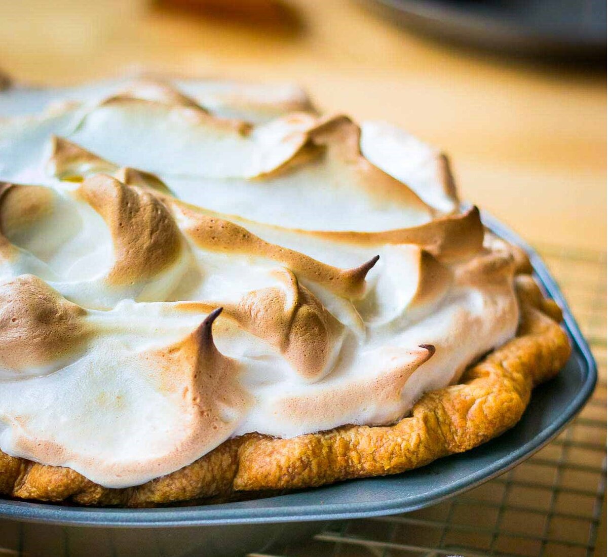 Хорошая новость об этом пироге заключается в том, что, в отличие от взбитых сливок или безе, зефирная начинка не течет и не просачивает жидкость на пирог, поэтому его можно приготовить горкой и поджарить заранее.