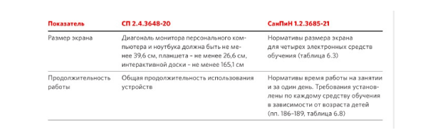 Чтобы ноутбуки, планшеты и другие электронные средства можно было использовать в обучении, поручите ответственному проверить, соответствуют ли они требованиям СанПиН 1.2.3685–21. Если не соответствуют, попросите контрактного управляющего закупить новые. И еще, расскажите педагогам, как они должны скорректировать время работы детей с электронными средствами обучения, поскольку Роспотребнадзор изменил и эти параметры. В трех таблицах найдете суть требований по двум документам СП 2.4.3648–20 и СанПиН 1.2.3685‑21, новые допустимые размеры экранов, продолжительность работы детей с электронными средствами. Еще читайте ответ юриста ВШЭ на вопрос заведующего, почему отменили ЭСО в обучении детей до 5 лет. Читайте подробнее, как выполнить требования Роспотребнадзора, на портале Ресобр.ру. Подпишитесь на канал, чтобы не пропустить новые публикации.
