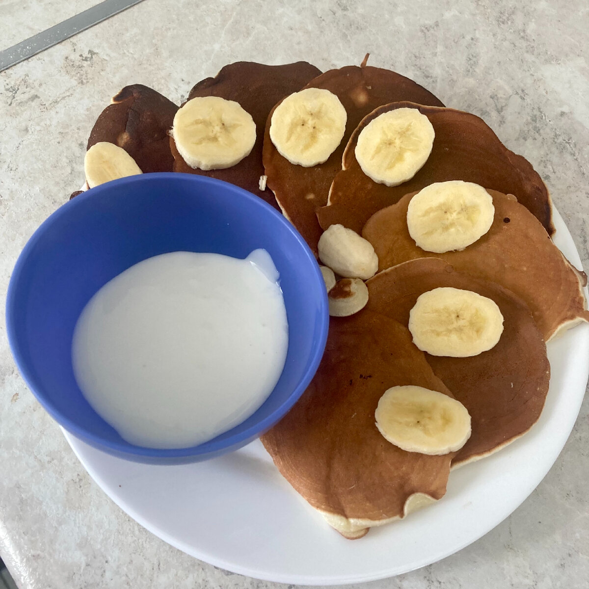 Иногда помимо каши на завтрак хочется какого-то разнообразия. И вот идеальное решение-ПАНКЕЙКИ. 🔹ИНГРЕДИЕНТЫ🔹 🔸 Мука - 30 гр. 🔸 Молоко 40 мл. 🔸Яйцо- 1 шт. 🔸 Сахар - 1 ч.л. 🔸 Разныхлитель - 0,5 ч.л. 🔸 (для декора)банан - 1/2 🔸 (для поливки)Мягкий творог САВУШКИН кокос-миндаль 🔹СПОСОБ ПРИГОТОВЛЕНИЯ🔹 1️⃣ Муку (30гр) смешиваем с молоком (40мл), с сахаром (1ч.л), с разрыхлителем (0,5ч.л)и яйцом(1 шт). 2️⃣ Обжариваем на сковородке на медленном огне. Когда появятся пузырьки переворачиваем. 3️⃣ Нарезаем банан. Творожок чуть-чуть разбавляем с водой, чтобы был более жидким. 4️⃣ Творожок можно заменить на что угодно: варенье, сгущёнка, растопленный шоколад, джем и тд)) 5️⃣ Сервируем и подаём! ПРИЯТНОГО АППЕТИТА))