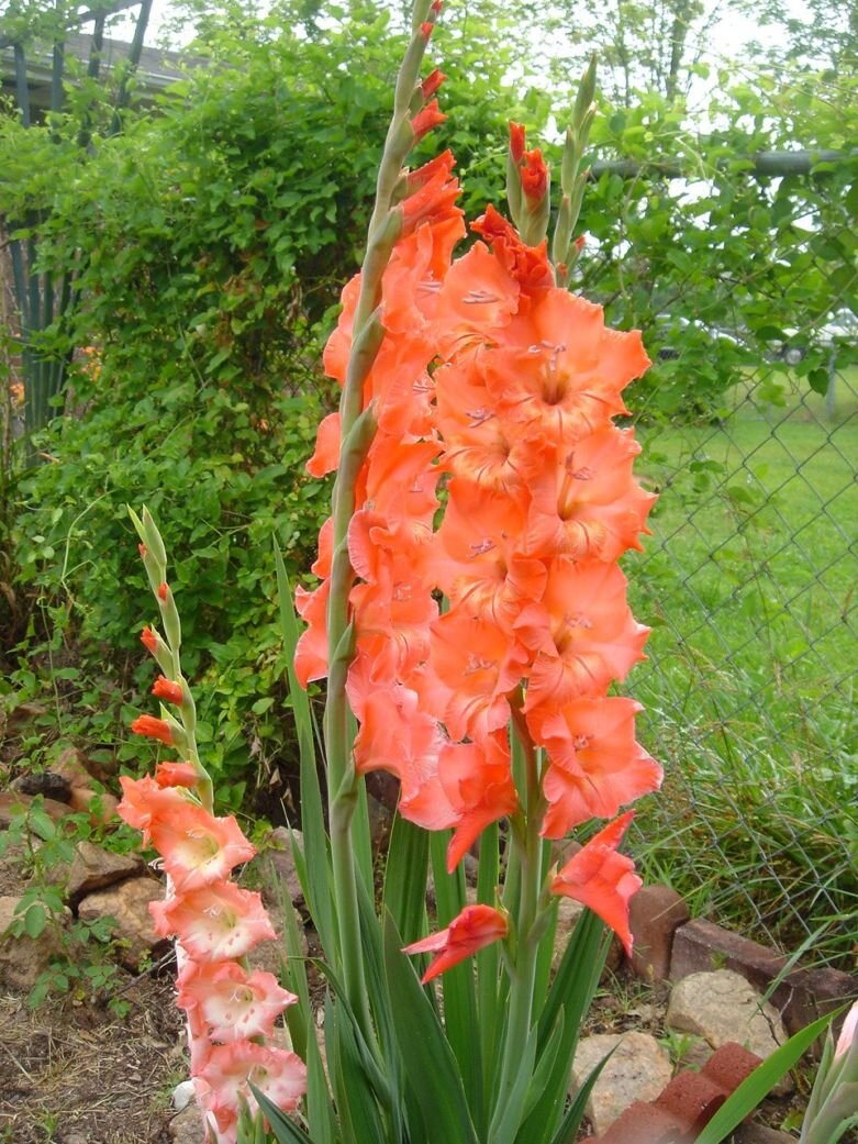 Июль время цветения гладиолусов. Как ухаживать за ними во время цветения, нужно ли удобрять? Гладиолусы подвязывают к колышкам, окучивают на небольшую высоту. С появлением соцветий растения подкармливают суперфосфатом и хлористым калием, а также микроэлементами - сернокислым цинком и борной кислотой. Подкормки лучше проводить после дождя, давать их в жидком виде. Внекорневую подкормку проводят 3-4 раза за лето. Первый раз растения опрыскивают когда формируется 3 лист, вторую перед цветением, третью в момент появления соцветий. Полив для гладиолусов особенно важен в первое время, когда развиваются листья и закладывается цветочный стебель. Недостаток воды в этот период вызывает искривление цветоноса в нижней части. Причем, гладиолусы нужно поливать нечасто, но обильно, когда подсохнет верхний слой почвы. После полива нужно порыхлить. Гладиолусы - срезочные цветы. Любоваться ими следует в вазе. Если оставлять гладиолус на клумбе, луковица замещения с каждым годом будет все меньше и хуже