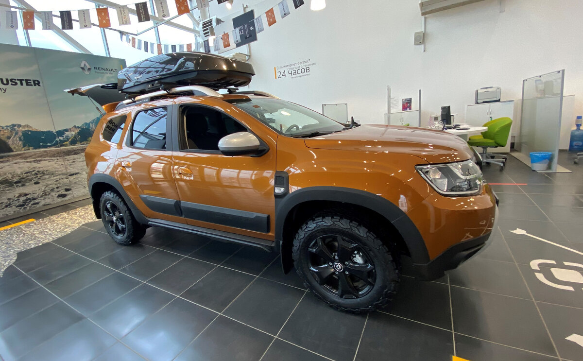 Привет друзья! Недавно посетил автосалон Renault, и решил познакомиться новинкой 2021 года. Новый внедорожник Renault Duster 2 поколения! Он имеет довольно строгий внешний вид, высокий клиренс 205мм, большой багажный отсек имеющий ровный пол, более современный, и комфортный салон. Прошлое поколение Renault Duster конечно сильно отличается от нового, эргономика там была мягко говоря не на стороне водителя. А вот Renault Duster 2 стал намного лучше. Особое внимание меня зацепила версия которая стояла в автосалоне. Стоимость почти 1.5 миллиона рублей. Это был автомобиль в выразительно оранжевым цвете, с пластиковыми накладками на дверях и колесных арках, что придает ему большей брутальности. Красивые колесные диски выполненные в черном глянце, имеющие агрессивную грязевую резину. Крышу автомобиля украшали рейлинги с надписью "DUSTER" и автомобильный бокс Renault. Согласитесь выглядит солидно? При виде данной конфигурации в голове сразу разыгрывается фантазия как ты будешь на нем путеш