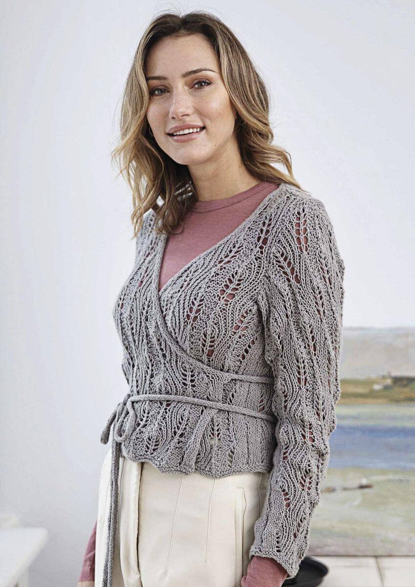 Подготовка к вязанию ажурного кардигана с запахом спицами