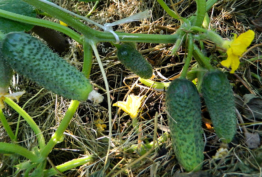 Июль – разгар огуречного сезона. Огурцы начали плодоносить – собирать свежие хрустящие зеленцы можно каждый день, пришла пора делать заготовки. Но и ухаживать за огуречными растениями в это время нужно особенно тщательно. Обильное плодоношение требует и постоянной заботы – поливы, подкормки. Ведь при обильном плодоношении растения выносят из почвы огромное количество питательных элементов, которое нужно восполнять. Как часто поливать огурцы в это время? Если погода стоит жаркая и сухая – поливать не помешает ежедневно, если не получается – то через день. Ни в коем случае не из шланга – огурчики любят теплую воду, берем ее из бочки, нагретую солнцем, и поливаем утром или вечером. Если не получается поливать регулярно – обязательно замульчируем почву под растениями. Нет никакой специальной мульчи – складываем выполотые сорняки, но довольно толстым слоем – уже через некоторое время трава подсохнет, этот слой значительно уменьшится. Траву можно постоянно подкладывать. Обязательно нужно ф