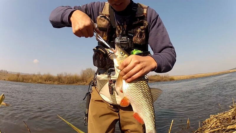 Ловля голавля весной начинается в некоторых более южных местах уже в марте-апреле. Но в это время вода ещё холодная, не более 7-8 градусов, что иногда отрицательно влияет на клёв этой рыбы. И лишь в солнечные тёплые дни бывают относительно массовые выходы голавля. Самой спортивной и нередко успешной бывает весенняя ловля голавля на воблеры минноу и прочие некрупные воблеры. Обычно применяются небольшие приманки размером 3-5 см. Также можно удачно использовать микроджиг весом около 2-3 грамма с насадкой резины в виде рачков и прочих силиконовых членистоногих. Хороший эффект может дать съедобная резина типа Хоги Хог. Наиболее успешными местами на реке являются так называемые бурыли, где встречаются весенние течения или проходит граница между течением и полосой спокойной воды. Также удачными бывают места с обратным течением. Из воблеров на голавля в последние годы получил распространение тонущий Rigge 46S, Tackle House Buffet S43. Плавающий Owner Selection TMI-53 также неплохо работает