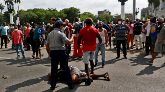 COVID-19 в материале не упоминается. Тысячи кубинцев присоединились к крупнейшим за последние десятилетия протестам против коммунистического правительства острова. Люди приняли участие в маршах в ряде городов, в том числе в столице страны Гаване, скандируя «Долой диктатуру!» И призывая к переменам. В ответ полиция применила слезоточивый газ и ударила нескольких демонстрантов. Кубинцы возмущены крахом экономики, а также ограничениями гражданских свобод и тем, как власти борются с пандемией. За последние дни зарегистрировано рекордное количество новых случаев заражения. Протестующие также призвали к ускорению программы вакцинации. Контролируемая государством экономика Кубы сократилась на 11 процентов в прошлом году, что является самым большим падением за почти три десятилетия, из-за пандемии и санкций США, введенных администрацией Трампа. Тысячи проправительственных сторонников также вышли на улицы после того, как президент Мигель Диас-Канель призвал их по телевидению защищать революцию