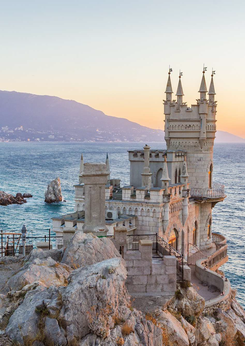 Хочешь побывать в замке, в котором снимался советский детективный фильм «Десять негритят»? Миниатюрный готический замок рас- положился на отвесной 40-метровой скале в пос. Гаспра. Он нависает над морской гладью, «любуясь» в ней своим отражением. Замок был построен по проекту архитектора Шервуда в 1913 г. для немецкого нефтяного промышленника барона Штейнгеля. Летом стоит приехать в «Ласточкино гнездо» рано утром или на закате, иначе толпы туристов не дадут насладиться атмосферой этого места. Вечером, кстати, замок красиво подсвечивается.