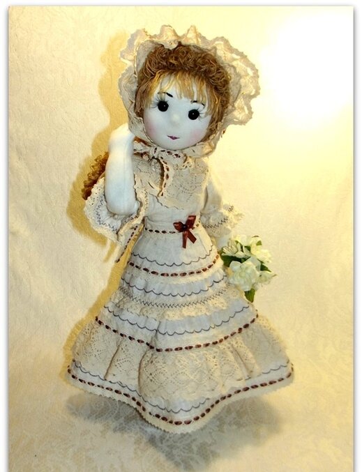 Был такой период в моей жизни, когда все мысли и время были заняты только куклами, сначала вальдорфскими, а затем и шарнирными... Вот это - моя самая первая шарнирная, текстильная кукла и как оказалось, первый опыт оказался удачным ( правда это на мой взгляд)))))))) Рост у куклы 42 см, она не стоит самостоятельно, только с помощью подставки, которая поддерживает ее за талию, внутри ручек проволочный каркас - пальчики сгибаются, голова на шарнирном креплении и за счет этого она поворачивается и наклоняется. Шила ее из итальянского кукольного трикотажа, молочного цвета, затем тонировала сухой пастелью. Глазки - японский стеклопластик, они называются "Влажный взгляд", бровки и ротик вышивала - мулине. Упс! Это Эмилия - неглиже, внутренний каркас спрятан под вторым слоем трикотажа, ручки и ножки гнутся и могут принимать самые разные формы. Вытачки удачно подчеркиваю особенности фигуры. В локтях и коленках стоят деревянные шарики, за счет этих шарниров - их можно сгибать, а также к телу
