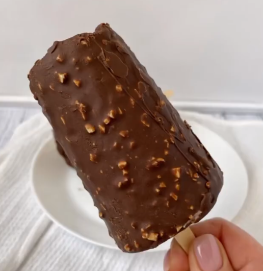 ⠀⠀Вынуть мороженое из стаканчика, разрезав стаканчик. Окунуть мороженое в шоколад, дать стечь лишнему шоколаду. И наслаждаемся