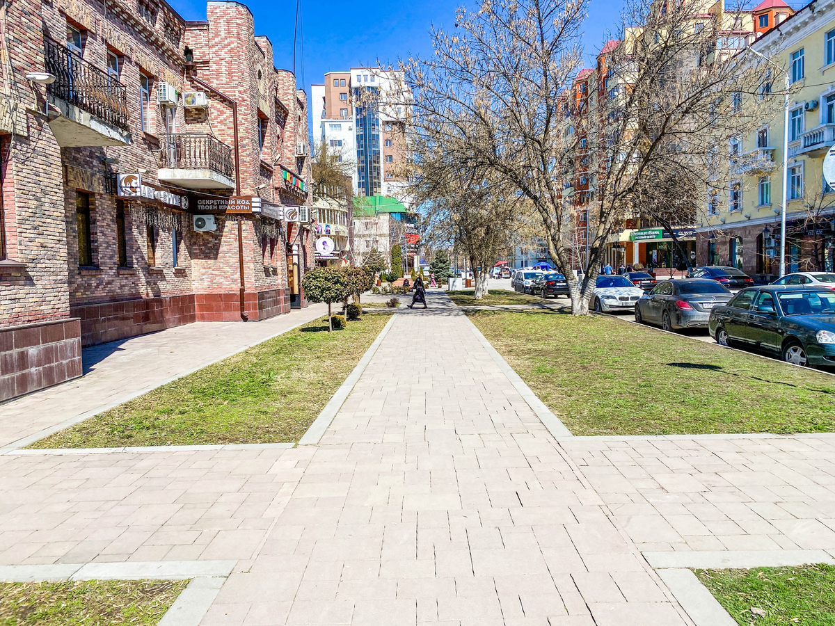 Продолжаем нашу прогулку по городу Грозному, столице Чеченской республики. И этот город поразил меня своей аккуратностью и чистотой. Здесь есть и тротуары, и аллеи, и газоны, засаженные травой. Все здания аккуратно отделанные, не обшарпанные. Трудно поверить, что каких-то лет 20 назад большинство улиц города были в руинах. Но сейчас Грозный стал красивым процветающим городом с развитой инфраструктурой. И это не может не радовать. Были мы в Чеченской республике весной, и деревья стояли еще голые. Летом здесь наверняка все утопает в зелени и очень красиво. Во время войны, к сожалению, много исторических зданий было разрушено и практически весь город отстраивался с нуля. Но некоторые здания все же сохранились. Вот, например, дом, в котором с 1957 по 1994 год борец за права и свободу чеченского народа Дзияудин Габишевич Мальсагов. Дом этот был построен еще в 1915 году и находится под государственной охраной. Еще в этом доме находится студия красоты. Окно этой студии, выходящее на улицу, сн