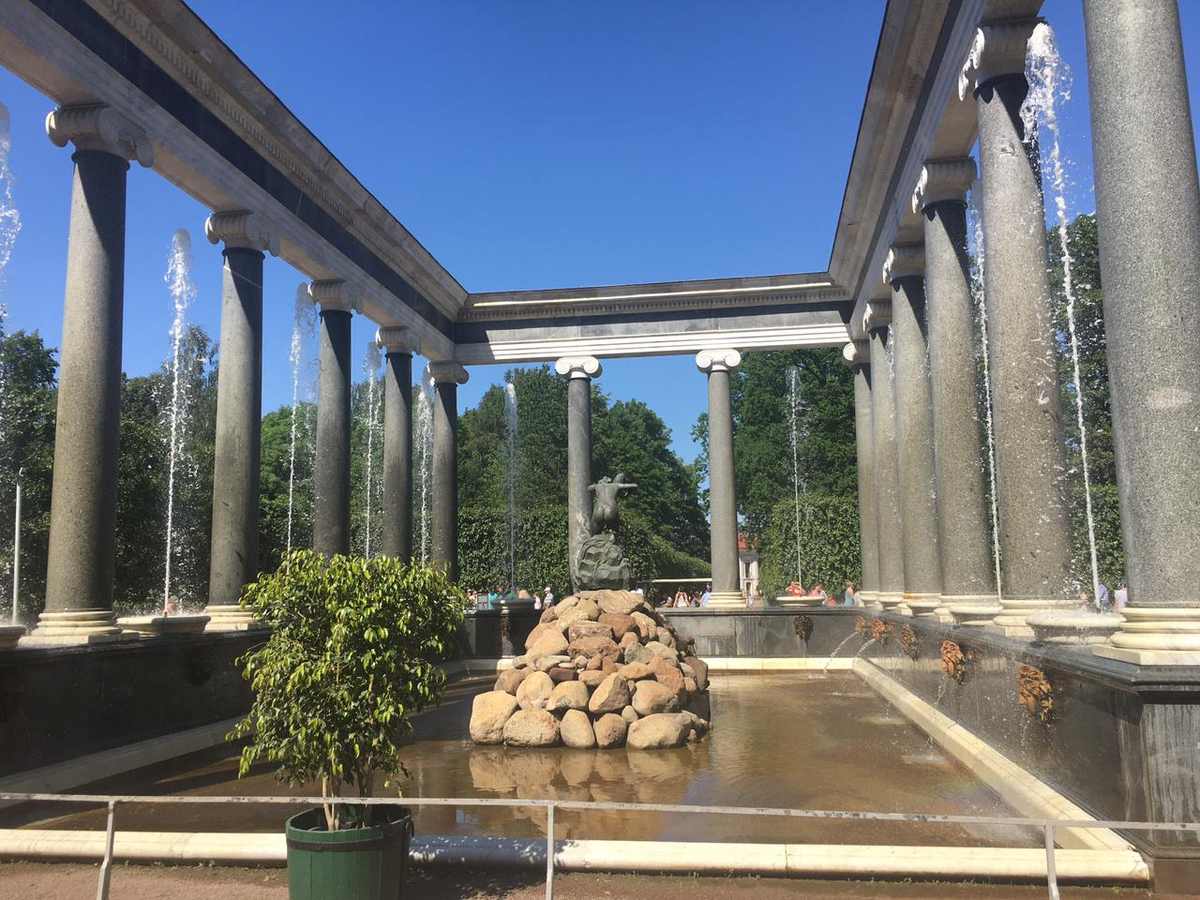 Пыль Петергофа на ногах, под крики чаек оседала. И праздно публика гуляла в фонтаны взгляды устремив. С ленцой, по парку колесили, мешая всем электрокары. И за собою уносили невозмутимо шлейфы пыли. Их заунывные рассказы, порою даже раздражали. И только бойкий голос гидов, собравших в стайки индивидов мне интересно было слушать, познав истории урок. В дубы и липы вековые, ручьи-каналы и залив, каскад фонтанов, статуй, львов-я окунуться был готов. Жара, июнь и Петергоф...