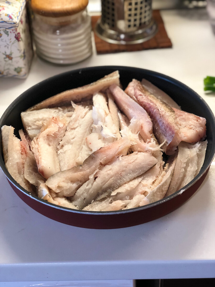 Минтай готовлю только так! Филе минтая , очищенное без косточек, укладываем в смазанную маслом форму для запекания, можно противень. Я очищала рыбу, можно купить готовое филе. Солим и перчим по вкусу. Затем в отдельной миске смешиваю зелень, сметану и майонез, чуть подсолить. Этим салатиком покрываю минтай. И на 20 минут в разогретую до 200 градусов духовку. Через 20 минут посыпать тёртый сыром и ещё 10 минут готовим в духовке. Получается лёгкое, вкусное блюдо. Хорошо к любому гарниру: рис, картофельное пюре, паста. Приятного аппетита!)))