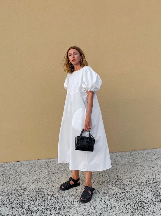 На бретельках, с длинным рукавом или фонариками, с кружевами или полупрозрачное — такие платья прекрасно смотрятся и с грубыми ботинками (чтобы носить уже сейчас), и с сандалиями/клогами/флип-флопами в жаркую погоду. Если на улице все ещё холодно, наденьте такое платье с тренчкотом или вязаной жилеткой.