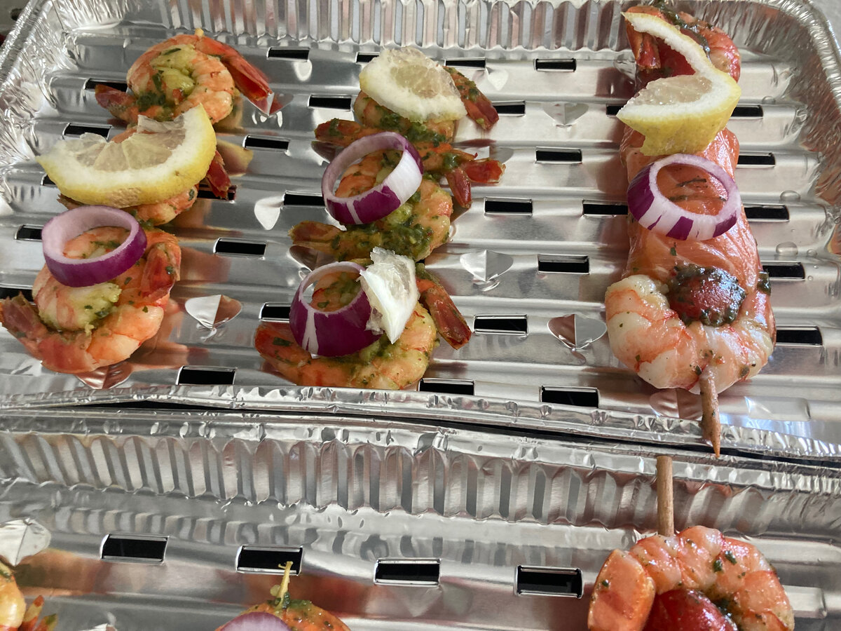 Гостей в Швейцарии можно попросить прийти в гости на барбекю со своим куском мяса. И это не зазорно. Иногда, узнавая меню предстоящего вечера, гость сам проявляет инициативу. Заявляет, что он принесет для себя что-то свое по своему вкусу. Желание гостя – закон. Хозяева обычно готовят салат и гарнир. Закуски. Гости приносят вино и выпечку. Часто сами выпекают пирог или кекс. Вот пример того как не слишком затратно, полезно и очень вкусно можно пообедать в летний денек с гостями. Два гостя вегетарианца пришли со своими шашлычками. Шашлычки из креветок и лосося. У нас же была порция мясных шашлычков. Накрыли стол. Все продукты легкие, недорогие (если покупать в субботу вечером продукты, то на многие продукты скидка 50 процентов и больше) и полезные для здоровья. И собрать такой стол можно быстро. С хорошим настроением и не уставая. Что положили на стол? Все ингридиенты для овощного салата. Каждый сам берет и формирует в своей красивой тарелочке собственный салат. И для блюда выложены лист