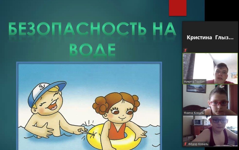 Наступили летние каникулы. Приятно в жаркий день искупаться в море, в речке, в озере, в пруду. Всем очень хочется, чтобы отдых прошёл без сложностей. Но каждый водоём может быть по - своему опасен. Сегодня в подростковом клубе «Центр общения» в Моем Семейном центре «Зюзино» филиале «На Севастопольском» прошло занятие в онлайн-формате о правилах безопасного поведения на воде. Занятия с ребятами провел студент 3-го курса МПГУ Торбин Ни кита Алексеевич. С целью закрепления знаний о правилах поведения на водоёмах в летнее время, детям был показан ролик «Безопасность на воде». После просмотра, ребята вспомнили основные правила поведения на водоемах, поговорили о том, какую помощь можно оказать человеку, находящемуся в трудной ситуации на воде. Чтобы закрепить материал, Никита Алексеевич предложил детям поиграть в игру «Закончи предложение», в которой нужно было подобрать правильные слова. Нельзя приходить к воде… Без взрослых. Нельзя заходить купаться на глубокое… Место. Нельзя нырять в не