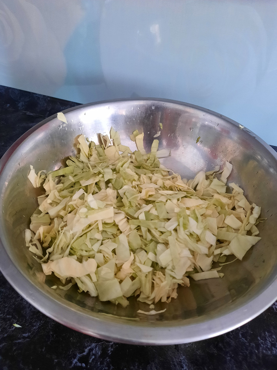 Капусту берём из огороду самую свежую. Шинкуем мелко, чтобы было удобно кушать. Кладем в отдельную тару, засолим, и помешаем. Дальше режем огурец и помидоры 🍅, все свое главное и свежие. Так кладём в тару, и замешиваем все, а дальше смешиваем все и наливаем чуть-чуть подсолнечное масло, и в холодильник.