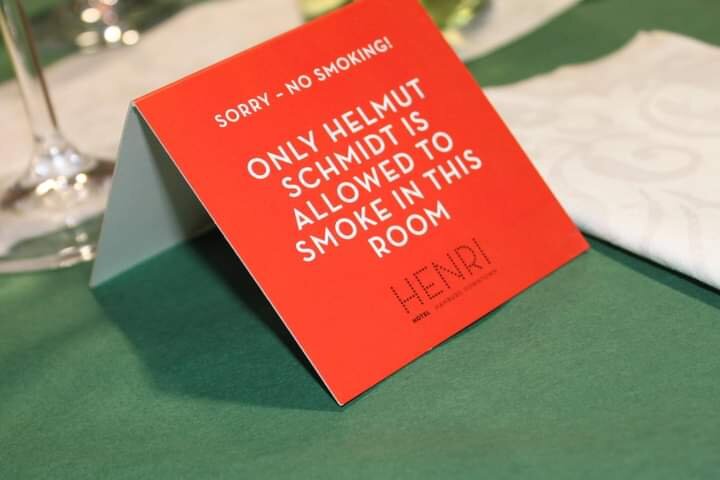 Канцлер ФРГ Гельмут Шмидт был заядлым курильщиком. Он хранил десятки блоков своих любимых сигарет "Reyno" на случай остановки их выпуска. По подсчётам, при расходе пачка в день их хватило бы до 100-летнего юбилея. Хотя, кажется, их бы продолжали выпускать только ради него. Показательный факт - с началом антиникотиновой кампании в Германии многие рестораны установили таблички, что курить разрешается только бывшему канцлеру.