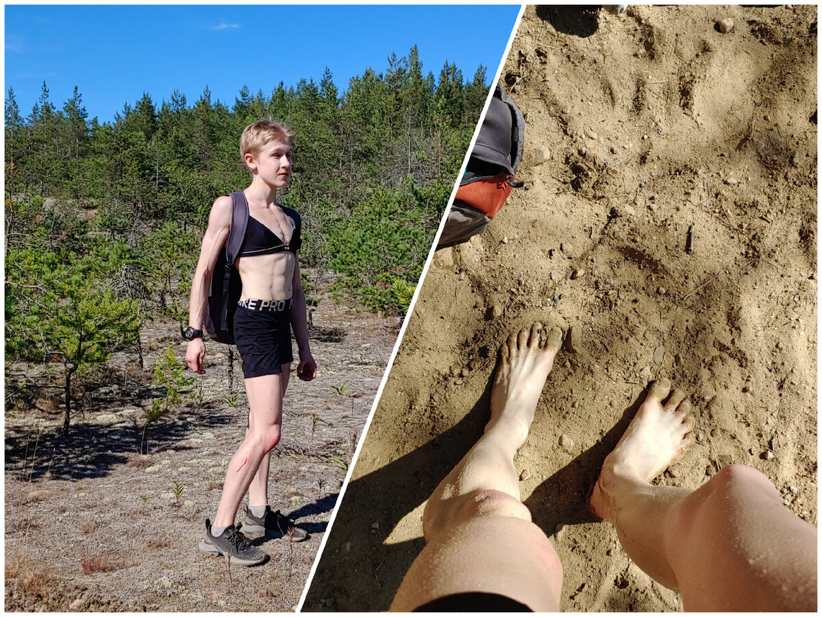 В эти выходные ездили на Карельские озера. Я встаю рано, в 5-6 утра, поэтому к моменту выезда уже успеваю разделаться со своим минимумом тренировочной активности и компьютерной работой. Ну а дальше - великолепнейшие несколько часов пешего марш-броска по пересеченной местности с упомянутым уже рюкзаком и возможность вдоволь поплавать в местных озерах. Прекрасные пейзажи, +28 С, солнце и +450 прожженных калорий на трекере*.