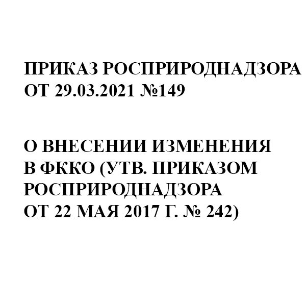 Приказ Росприроднадзора от 29.03.2021 №149 "О внесении изменения в ФККО"