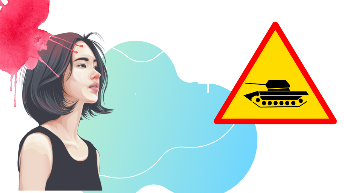 Со стуком откинулась крышка люка. Из танка показалось сердитая девушка в шлеме.