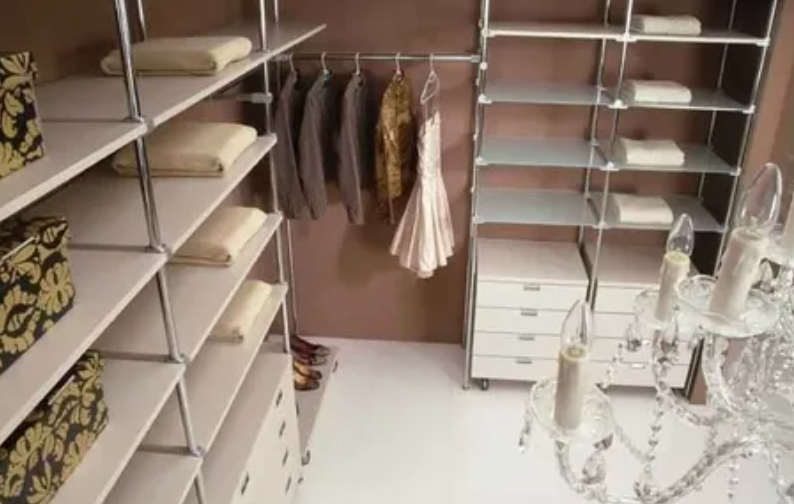 Вам не приходится каждое утро бегать одеваться в другую комнату. Минус в том, что утром, одеваясь, Вы можете побеспокоить спящего партнера. Но, если пространство позволяет, выделите отдельную комнату для гардероба. Отличное решение — двухсторонняя система стеллажей, которую можно свободно оборудовать полками, вешалками и ящиками в соответствии с Вашими потребностями. Не забудьте про пространство для переодевания и хранения вещей. Если у Вас дома недостаточно места, постарайтесь эффективно использовать все пространство. Например, двухъярусные лямки, на которые можно повесить брюки и рубашку. Если в шкафу есть глубокие полки, используйте пространство сзади, чтобы разместить менее востребованную одежду. Если у Вас дома высокие потолки, используйте и э