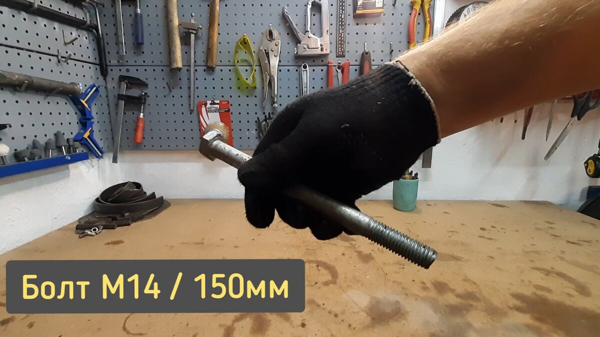 Всем привет друзья 🖐 На этот раз поделюсь с вами процессом изготовления простой и полезной самоделки для мастерской! И так, приступим! Для нашей самоделки сгодится болт М14, длиной 150мм, шаг резьбы не имеет значения Болт нужно немного укоротить. Зажимаю его в тиски... ...и при помощи УШМ отрезаю лишнюю часть Получается примерно вот так. Минус 30мм, итого - 120мм Следующая деталь оказалась подходящего размера - отрезок квадратного прутка 10×10, длиной 70мм, её так же "включим" в основу изделия Две заготовленные детали предстоит сварить вместе, в том положении как показано ниже на фото 👇 После сварки обработаем деталь лепестковым кругом В итоге получаем одну из заготовок для будущего изделия Следующее что нам понадобится - поршневой палец от а/м ЗИЛ-130... ...а так же отрезок металлического уголка 40×40мм, шириной 10мм При помощи магнитного угла, палец и уголок выставляю в следующем положении... 👇 ...после свариваю их вместе Ну и конечно же обработаем сварочные швы болгаркой Подобрал