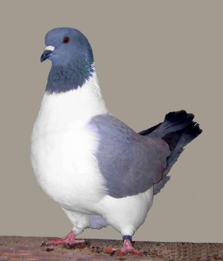 Отдельно стоит отметить оригинальную расцветку голубей данной породы: их бедра, нижняя часть корпуса и шея имеют белый цвет, а вот остальные части – цветные, то есть окрас может быть голубым, сизым, желтым, красным или черным.