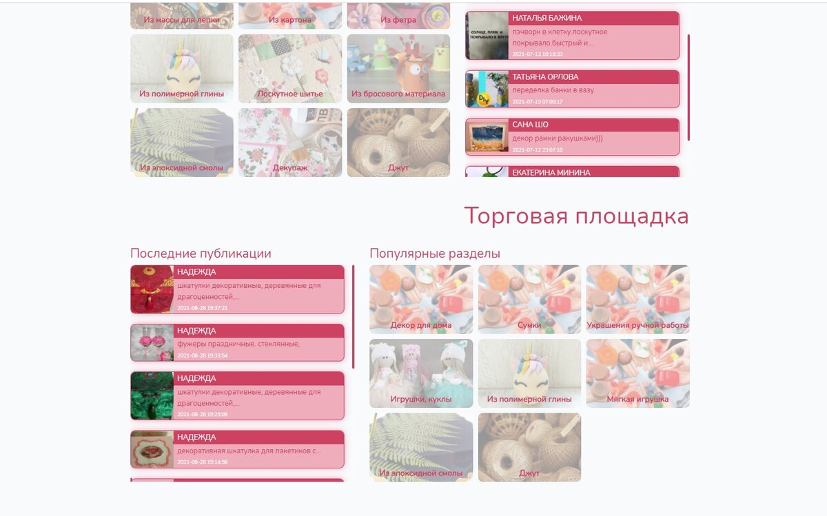 Здравствуйте дорогие друзья. Сейчас очень много рукодельниц и очень многие ищут площадки для продажи своих изделий. Я сама занимаюсь рукоделием, а как продать то что делаю я не знала, решила сделать сайт. Сначала я туда выкладывала видео и мастер классы с ютуба. Потом сделала продающую площадку или как ее называют сейчас модно маркетплейс. Многие рукодельницы работают из дома и хотят зарабатывать на этом. Продающая площадка это самое удобное. Вы разместили свои шедевры и они уже крутятся в интернете. Показываются в картинках на Яндексе, статьи Ваши находятся в поисковике. И самое приятное это то что не надо за это платить. До следующего лета платформа без оплаты, а потом посмотрим на активность, кто больше всех будет выставлять свои работы получит приятный бонус и дальше без оплаты выставлять свои работы. И да, проценты с продаж платить тоже не надо!!!!! Подумайте скоро Новый год и все на этом хотят заработать. Так что не тормозите, а выкладывайте свои работы на сайте. Сайт пока мол