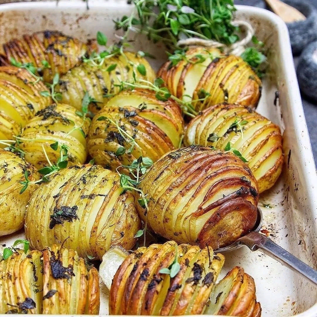 5. Запекайте 50-60 минут до золотистой корочки. Горячий картофель посыпьте рубленой петрушкой. Приятного аппетита!