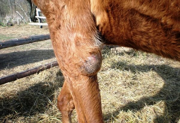 - Шаг 1. Проверьте, появились ли на задних конечностях коровы/быка/теленка абсцессы (нарывы, гнойники, которые появляются из-за воспалительного процесса) или гугромы (кисты, образующиеся в тканях). Часто у животного развивается бурсит – воспаление суставов на передних конечностях.