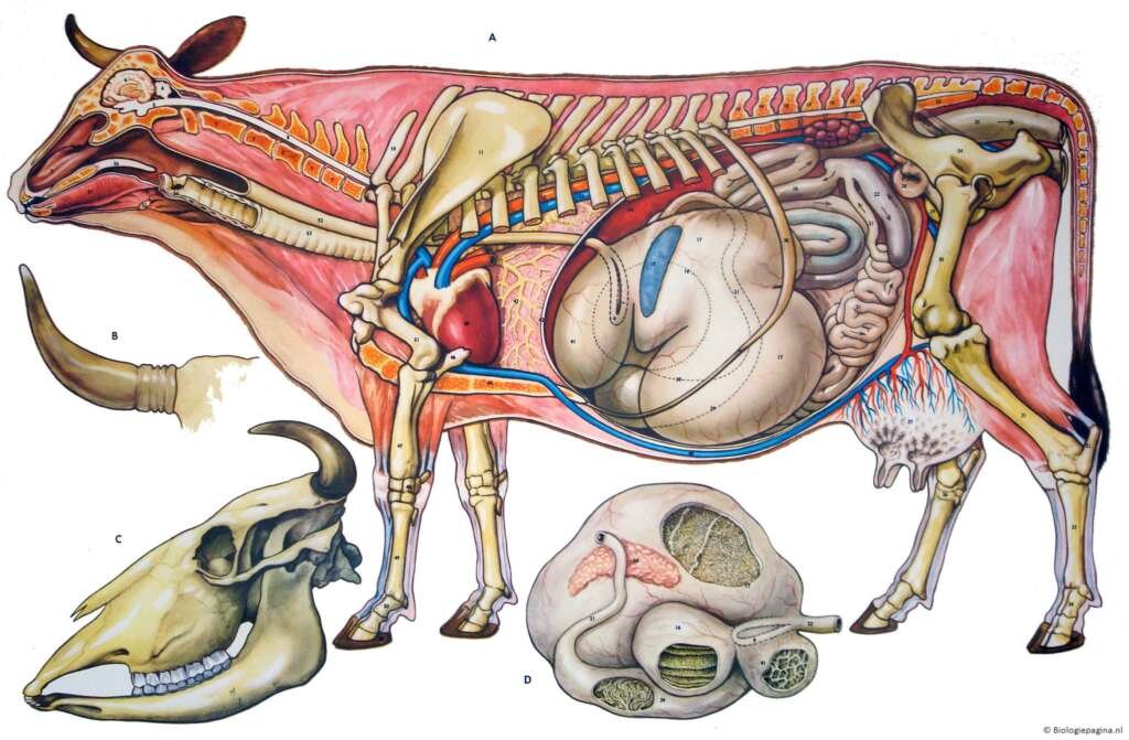 Каждый из отделов представлен группой тканей, органов, мышц, способствующих нормальной жизнедеятельности коровы.