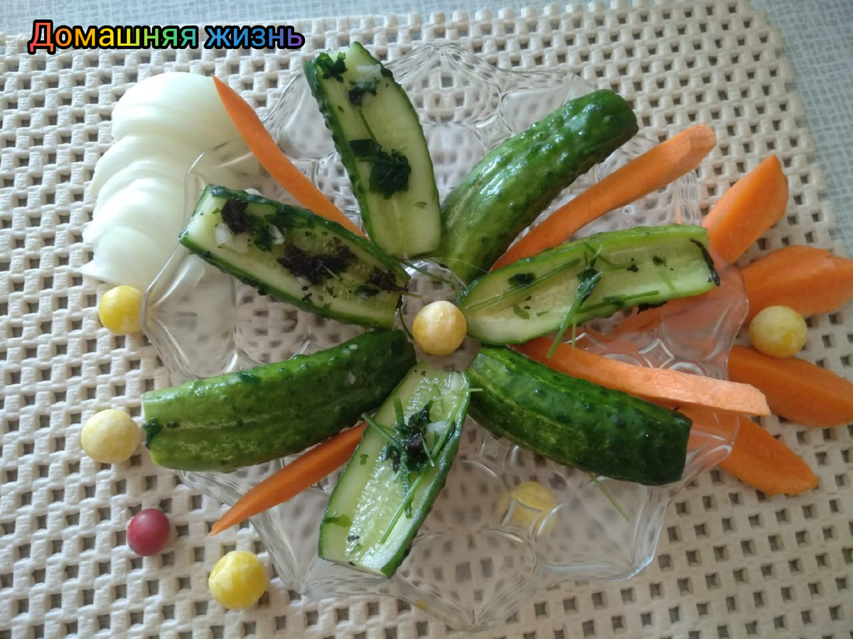Огурчики малосольные и хрустящие. Через 30 минут их уже можно есть. Отличная закуска в любую погоду