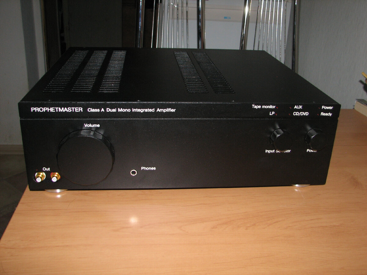 Аудиосистема известного мэтра российского Hi-End Юрия Анатольевича Макарова, построенная в специально оборудованной комнате прослушивания и являющаяся референсной во всех отношениях, внесла основные коррективы в конструкцию данного усилителя: была удалена цепь Цобеля с выхода УМ и основной вход сделан в обход разделительного конденсатора. В этой аудиосистеме слышно все и даже больше, поэтому трудно переоценить ее вклад и советы Юрия Анатольевича в процесс доводки звучания усилителя. Состав его аудиосистемы: источник – транспорт и ЦАП с отдельным блоком питания Mark Levinson 30.6, АС Montana WAS от PBN Audio, бескомпромиссный однотактный ламповый усилитель «Император» и все антифазные кабели конструкции Ю.А. Макарова. Нижняя граничная частота АС Montana WAS 16 Гц (-3 дБ) позволила оценить «вклад» разделительного конденсатора, причем достаточно качественного (MKP Intertechnik Audyn CAP KP-SN), в искажения НЧ диапазона музыкального сигнала, а высочайшее музыкальное разрешение аудиосистемы - услышать негативное влияние выходного фильтра, в виде R-C цепи Цобеля, которая не оказывала никакого влияния на устойчивость усилителя и вскоре была удалена с платы. Подключение внешних низкоОмных регуляторов громкости от 100 Ом до 600 Ом (штатный РГ ставился в положение максимум) дало понимание того факта, что даже высококачественный дискретный регулятор DACT 50 кОм, использованный в моем усилителе, неплохо было бы заменить на меньший номинал (из подключаемых внешних мне показался лучшим РГ 600 Ом), но для этого пришлось бы достаточно много переделывать и было принято решение реализовать это и другие накопившиеся усовершенствования уже в новом проекте. Кстати, на сайте датского производителя DACT есть страничка с этим усилителем: http://www.dact.com/html/prophetmaster.html.