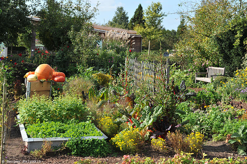 1. Цуккини. При желании в цветник можно посадить и обычный кабачок, но цуккини подойдет лучше: куст у него более компактный, а листья и плоды интереснее по форме и расцветке. В цветнике красиво будет смотреться куст цуккини среди бархатцев или низкорослых зеленных культур. Есть сорта цуккини с ярко-желтыми, оранжевыми, полосатыми, очень темными зелеными плодами. Есть и нестандартные формы: например, круглый плод, напоминающий тыкву. Обычно цуккини более скороспелы, чем обычные кабачки, некоторые сорта могут давать урожай даже дважды в течение сезона при дополнительном подсеве. Сеют цуккини прямо в грунт начиная со второй декады мая, когда почва прогреется до +14° С и выше. Крайним сроком посева считается 15 июня, период урожайности можно удлинить, подсеивая семена с разницей примерно в неделю. Семена перед посевом должны «наклюнуться», для этого их на пару дней вкладывают в мокрую марлю. В зависимости от плотности почвы семена заделывают на глубину 3-5 см (глина и суглинок) или 5-7 см (легкие песчаные почвы). В каждую лунку сеют по два семечка, после прорастания лишние растения удаляют. Цуккини требуют полива нехолодной водой, во время цветения и плодоношения полив нужно увеличить. Полезны будут и подкормки комплексным удобрением 2 раза за сезон, если вы хотите получить хороший урожай.
