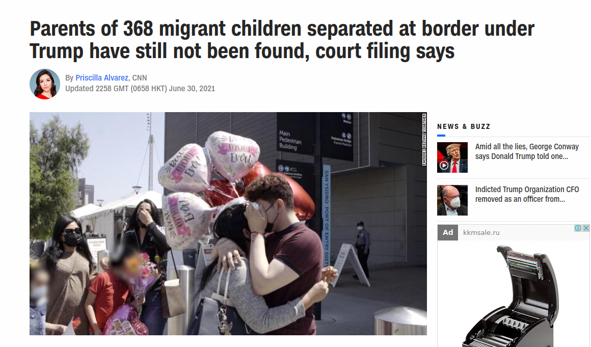 Родители детей-мигрантов, разлученных на границе при Трампе, до сих пор не найдены, говорится в материалах суда. Согласно правительственным данным, в соответствии с иммиграционной политикой тогдашнего президента Дональда Трампа "нулевой терпимости" пограничники разлучили по меньшей мере 2800 детей с их родителями.