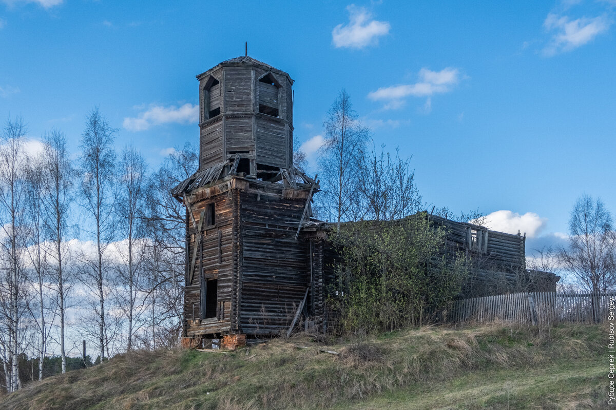 Очень часто бывает, что совершенно в неожиданных местах можно наткнуться на какие-то удивительные объекты, у меня подобное бывает довольно часто, хотя я всегда стараюсь просматривать свои маршруты заранее в надежде, что-нибудь снять по пути. Вот и в этот раз, следуя из Нижнего Новгорода в сторону Йошкар-Олы не по заранее запланированному маршруту, я прям опешил, когда прям возле дороге я увидел удивительный заброшенный деревянный храм. Я оказался в селе Докукине Воскресенского района Нижегородской области, а на возвышенности стояла церковь Параскевы Пятницы, которую перевезли сюда в 1920 году из села Покровское. Архитектурной особенностью данного храма являлось то, что внутри под куполом был специальный балкон, на котором пел местный хор, такое решение мне раньше не попадалось. К сожалению, сейчас храм совсем обветшал и увидеть все это не представляется возможным. После закрытия в 1939-м году в здание расположился местный клуб, а позже его переоборудовали в зернохранилище. Сейчас же з