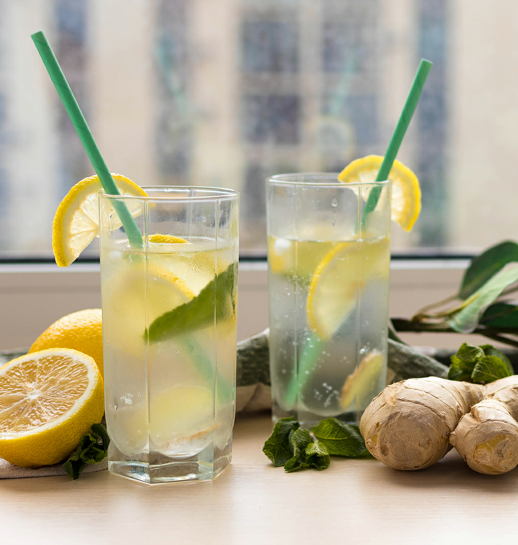 Ингредиенты Трудно найти человека, который не знает об этом освежающем напитке - лимонаде. Добавьте имбирь и мяту, и получите новый великолепный вкус! Имбирный лимонад – идеальный напиток для летнего дня! Хорошо освежает и бодрит в знойную пору Пошаговый рецепт 1. Лимоны разрезать пополам, выдавить сок. Добавить к соку мед. Почистить имбирь, мелко нарезать. забросить в чашу с медом и лимонным соком. Добавить листики мяты. 2. Добавить в приготовленную смесь воду. Дать настояться около 30 минут (не меньше). 3. После процедить напиток через марлю или сито в кувшин. Добавить желаемое количество льда. Подавать к столу. Приятного аппетита!