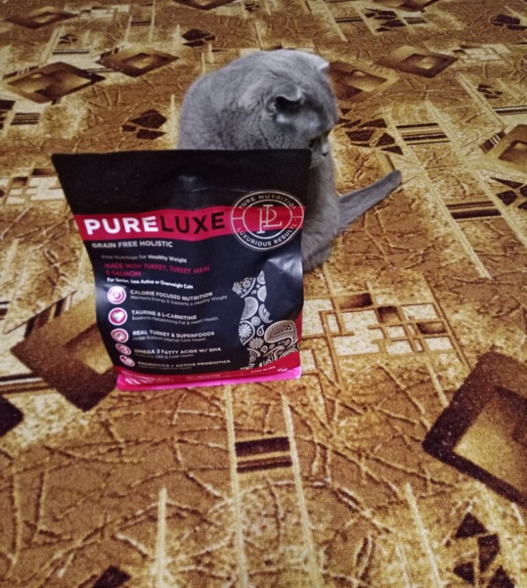 Полное название – "Pureluxe Healthy Weight с индейкой и лососем" сухой корм для нормализации веса кошек". Беззерновой корм класса холистик. Сбалансированный состав с пониженным содержанием жира способствует постепенному снижению избыточного веса и помогает поддерживать питомцу идеальный вес. Подходит для кастрированных (стерилизованных) и пожилых кошек.