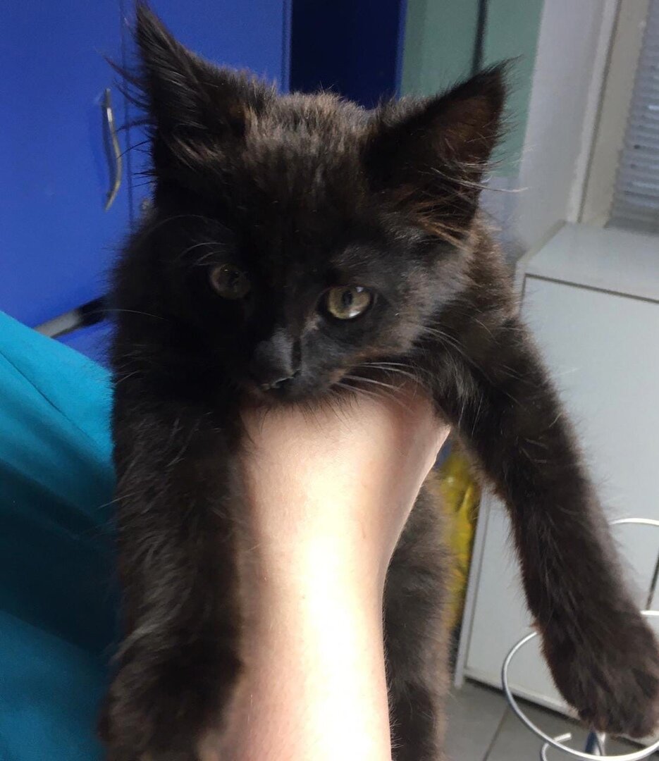 Самостоятельный путь маленького черного котенка начался очень рано. Котенка Фиму хозяин его мамы-кошки просто высадил у заброшенного дома. Фиму люди снимали с высокого дерева, куда его загнали собаки, угощали колбаской, но долгожданный счастливый билетик ему так никто и не подарил... Фима три дня плакал в кустах под проливными дождями, пока не попался волонтерам на глаза. Забрали, услышали, что дышит хрипами. Отвезли в ЦВМ - предварительный диагноз плеврит на рентгене не подтвердился, однако, был выявлен сильный отек гортани (даже сначала решили, что там инородное тело). Фима проходит лечение на стационаре, но потом после выписки ему некуда идти... 😩 Фима - мега ласковый, мега обаятельный пушистик цвета шоколадной ночи. Кто может помочь погасить долг за стационар будем безмерно благодарны!