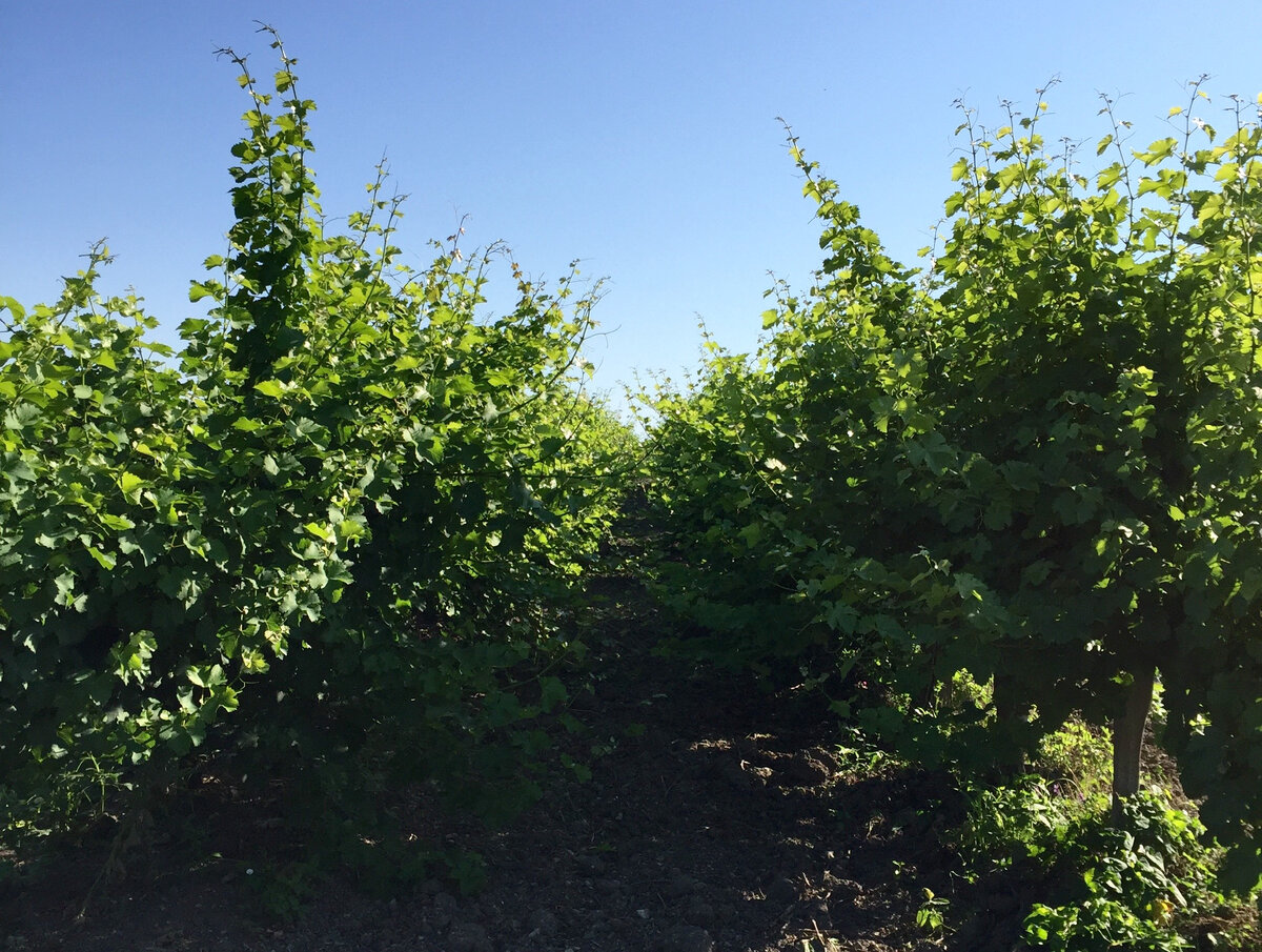Жара и ливни сделали свое дело, и наш виноград, что называется, попер. Ох как попер! Вот, смотрите сами. И мы уже начали борьбу с этим буйством нежелательной растительности. Почему нежелательной? Потому что нам нужно, чтобы все силы лозы уходили не в пышные зеленые побеги, а в скромно зреющие под ними грозди, которые, кстати сказать, эти побеги еще и от солнца загораживают. И от ветра тоже. Недостаток солнца мешает грозди правильно развиваться и набирать сахар, а отсутствие проветривания создает влажность, которую так любят грибки и бактерии, вызывающие болезни. Поэтому режем все срочно, а иначе побеги одеревенеют и удалить их можно будет, только сломав и повредив лозу. Процесс удаления зеленых побегов называется чеканкой и раньше всегда проводился вручную. С ужасом и трепетом слушаем мы рассказы старших товарищей, которым довелось отрабатывать трудовую повинность в школе или институте, выезжая на чеканку! И тихо радуемся тому, что у нас для этих целей уже есть специальные ножи, цеп