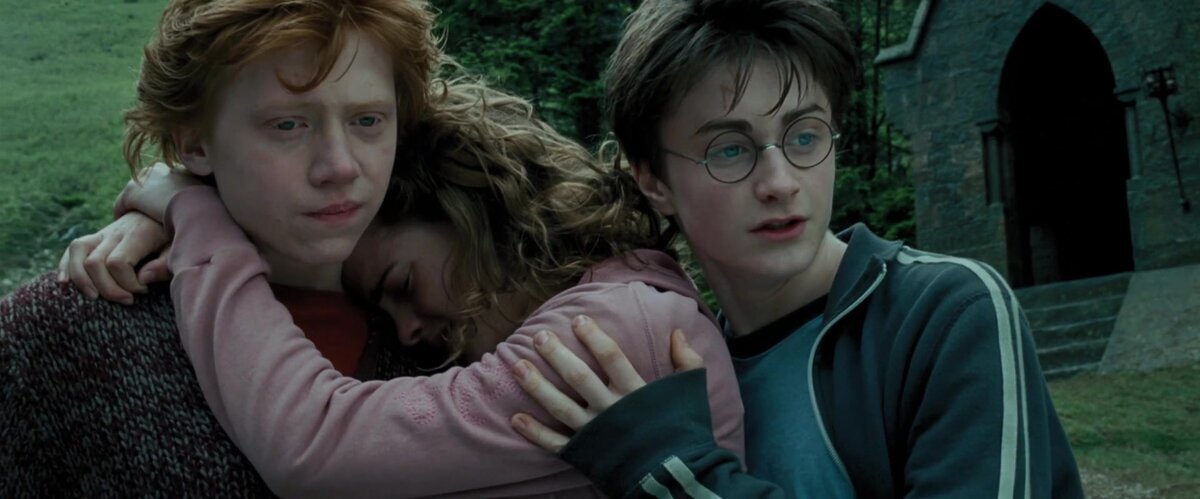А вот эта сцена намного интереснее. Пока Рон и Гермиона пытаются поддержать Гарри, остальные школьники, вернувшиеся из первого в этом году похода в Хогсмид, активно делятся впечатлениями и демонстрируют покупки. Рон дарит другу карманный тайноскоп "на всякий случай" и Гарри впервые пробует те самые конфеты, что заставляют его испускать пар.
