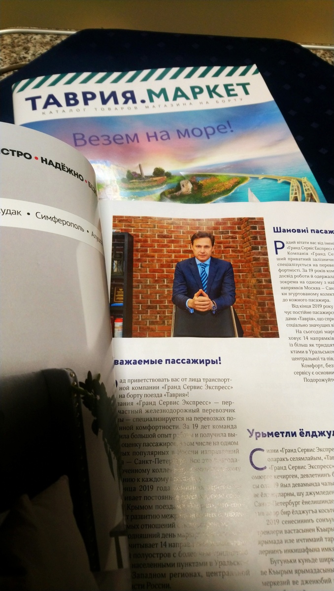 Наконец то дошли руки до картонного кубика, который приобрел некоторое время назад в поезде. В поезде особенном, «Таврия». Эту фотографию сделал перед отправлением в купе. Некоторые друзья воронежцы и тамбовчане, наверняка узнали на развороте Александра Ганова. Для тех, кто «в теме», специально его представлять не нужно. А для остальных - в настоящее время он генеральный директор «Гран Экспресс Сервис». Эта компания и обеспечивает железнодорожные поездки в Крым. Но вернемся к кубику. Очень интересно, насколько его содержимое оправдает мое ожидание. Не торопясь, коробочка превращается… Превращается… В кружку! Черная. Как та ночь, когда поезд отправляется из Москвы. И это все? Судя по упаковке ожидал иного. В прочем… Вау! Вот оно! Под воздействием горячей воды происходит самое главное. Кстати, поезд с Казанского вокзала отравляется ночью, в 23:50, по крайней мере тот, (028Ч/027Ч, двухэтажный) на котором довелось проехать мне. И черная московская ночь на кружке превращается в крымское ут
