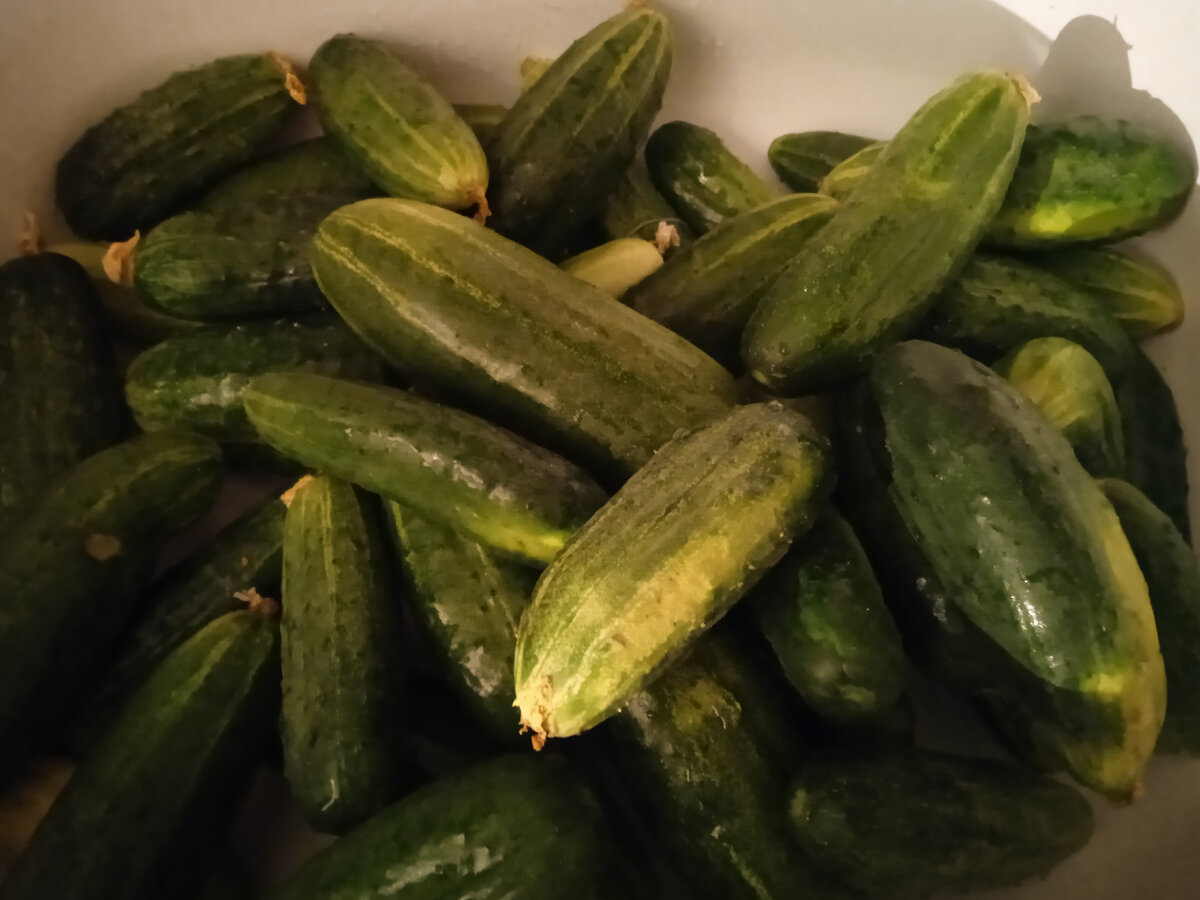 Собираем огурцы, моем и накладываем в чистую банку. Сделать это нужно непременно в первые сутки после срывания их с грядки.