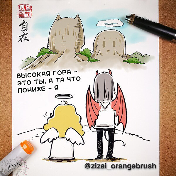 Я продолжаю восстанавливать события в группе в ВК, а точнее публиковать перевод комиксов от Цзы Цзай в том порядке, в котором его публиковал сам автор. Потому, сейчас довольно часто встречаются переводы старых комиксов и на Дзен, так как я довольно много всего пропустила. Но, уверяю, что это очень интересные и приятные комиксы, которые не оставят вас равнодушными. Так же, я стараюсь чередовать старые комиксы и новые, чтобы вы видели, как изменилась рисовка, и что автор продолжает совершенствоваться. Не знаю как вас, но меня видеть подобные улучшения очень мотивирует. Я и сама купила себе тут графический планшет, с целью наконец-то рисовать не только на бумаге, но и на цифре. Тем более, что мне уже давно хочется нарисовать (или хотя бы попробовать) собственные комиксы. Так что, надеюсь, скоро будет премьера. Скажите, а вы хотели бы посмотреть, какие комиксы я смогу нарисовать? А пока их нет, полюбуемся на любимых Демоненка и Ангелочка: Еще графический планшет нужен мне для того, чтоб